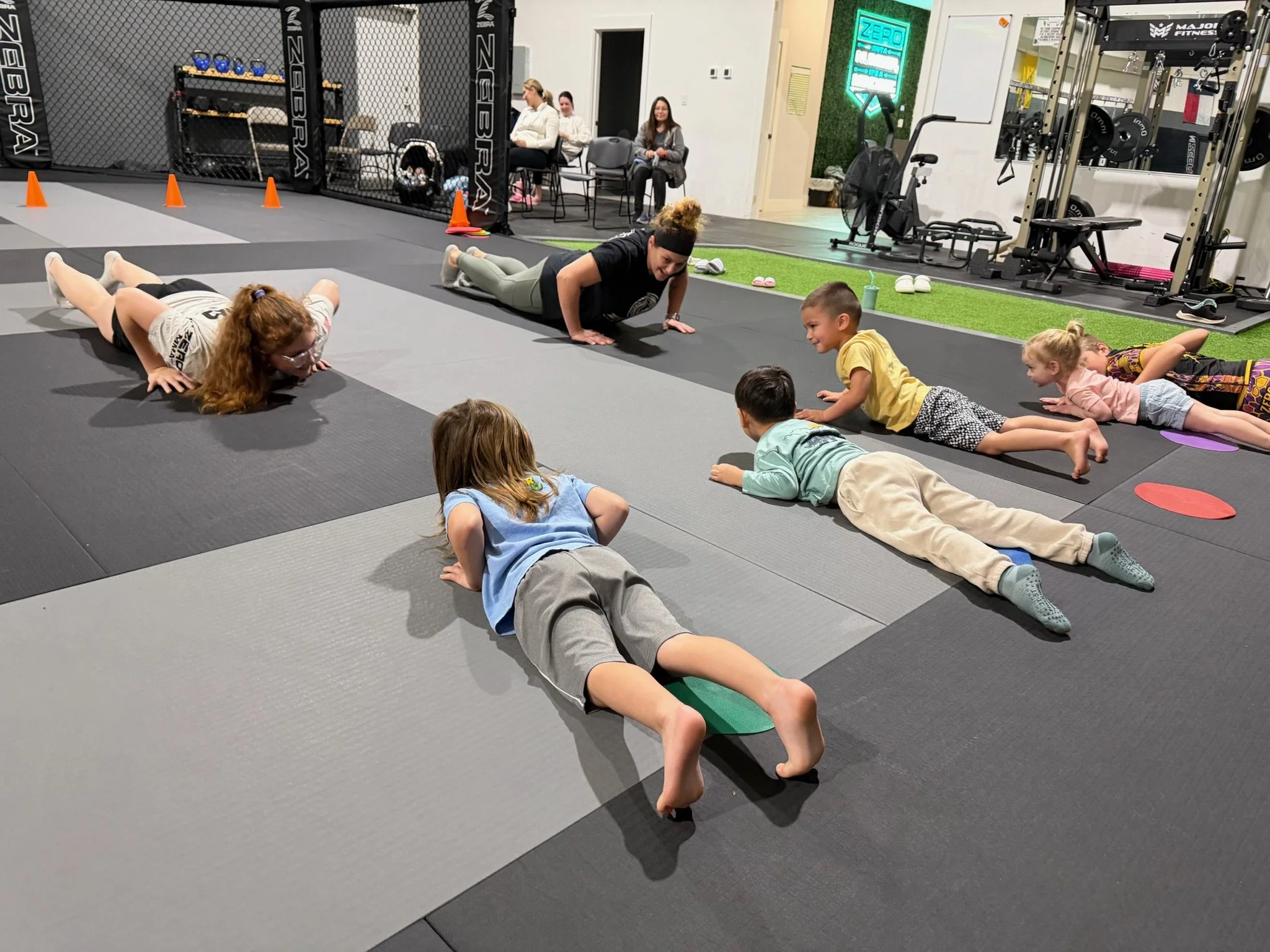 Our Mini Zeros Program is designed for (ages 2–4) and is a fun, structured combination of Brazilian Jiu-Jitsu and kickboxing fundamentals, yoga, playful cardio, and beginner strength and agility training. All elements are blended into each class to support early physical and mental development in a safe, positive environment.